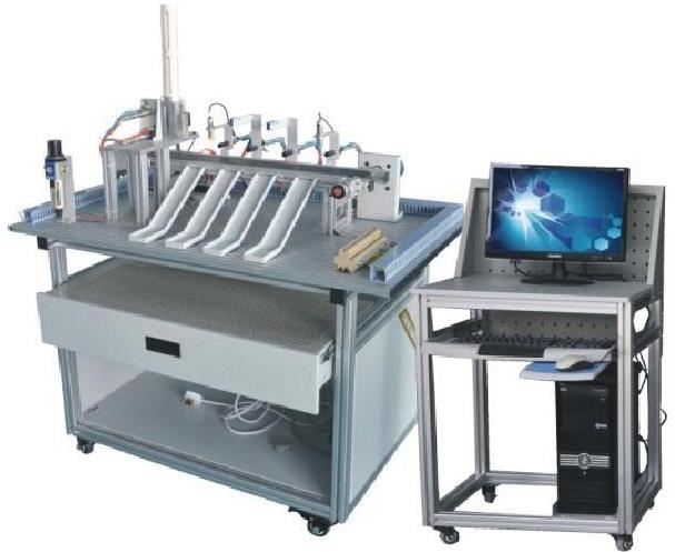 材料分揀實訓裝置是針對機電一體化教學的要求而研發(fā)的,它涵蓋了PLC、氣動控制、電機傳動、電磁鐵控制、位置控制、傳感器檢測等教學內(nèi)容,是實際工業(yè)現(xiàn)場生產(chǎn)設備的微縮裝置;诙喾N傳感器的檢測及旋轉(zhuǎn)編碼器的精確定位,實現(xiàn)對不同材質(zhì)、不同顏色物體的分揀。裝置采用全開放式布局且具有設故排故單元,可充分鍛煉操作者系統(tǒng)接線、機械調(diào)試安裝、軟件編程、獨立構(gòu)建控制系統(tǒng)、反饋整定、故障檢測及檢修的能力。適合于自動化、電氣自動化、電氣工程等專業(yè)的《運動控制》、《氣壓系統(tǒng)》、《機電一體化技術》、《檢測與轉(zhuǎn)換技術》、《可編程控制技術》等課程開設實訓課。