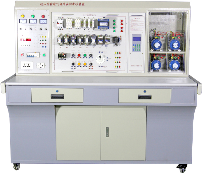 機床電氣控制實訓(xùn)室設(shè)備是機電設(shè)備維修與管理、電氣自動化技術(shù)等專業(yè)學(xué)生的實訓(xùn)場所,通過實驗、實訓(xùn),使學(xué)生掌握工廠常用的各類型設(shè)備的電路維護(hù)檢修。如鉆床控制電路、車床控制電路、銑床控制電路、磨床控制電路及鏜床控制電路等。主要產(chǎn)品有普通車床、萬能銑床、萬能外圓磨床實訓(xùn)考核裝置,可開展機床常用電器及選擇、機床繼電器控制電路的基本環(huán)節(jié)、典型機床繼電器控制系統(tǒng)的分析和設(shè)計方法、機床維修等實訓(xùn)內(nèi)容。機床電氣控制實訓(xùn)室設(shè)備面向?qū)I(yè)、機電一體化技術(shù)、機械制造與自動化、電氣自動化技術(shù)專業(yè) 、實訓(xùn)目的、通過實驗實訓(xùn)使學(xué)生掌握典型機床電氣控制系統(tǒng)的安裝、調(diào)試及維護(hù)的操作技能,提高學(xué)生的動手能力。本實訓(xùn)室還可用高級維修電工技能鑒定的培訓(xùn)和考核。 機床電氣技能實訓(xùn)考核鑒定裝置、主要實訓(xùn)項目及功能 、主要承擔(dān)《機床電氣控制系統(tǒng)運行與維護(hù)》、《常用電氣設(shè)備控制檢修與維護(hù)》、《高級維修電工考證培訓(xùn)》等課程實訓(xùn)、實驗教學(xué)以及相關(guān)的職業(yè)技能鑒定,可開展實訓(xùn)項目: CA6140車床電氣控制線路的安裝、調(diào)試及維護(hù)。 X62W萬能銑床電氣控制線路的安裝、調(diào)試及維護(hù)。 Z3040搖臂鉆床電氣控制線路的安裝、調(diào)試及維護(hù)。 電動葫蘆電氣控制線路的安裝、調(diào)試及維護(hù)。 職業(yè)技能培訓(xùn)及鑒定、考證。 機床電氣技能實訓(xùn)考核裝置、C6140 普通車床電氣技能實訓(xùn)考核裝置(半實物)、M1432 萬能外圓磨床電氣技能實訓(xùn)考核裝置(半實物)、M7120 平面磨床電氣技能實訓(xùn)考核裝置(半實物)|網(wǎng)絡(luò)型平面磨床電氣技能實訓(xùn)智能考核裝置、PDH 電動葫蘆電氣技能實訓(xùn)考核裝置(半實物)、機床電氣技能實訓(xùn)考核鑒定裝置、T68 臥室鏜床電氣技能實訓(xùn)考核裝置(半實物)、X62W 型萬能銑床電氣技能實訓(xùn)考核裝置 ( 半實物 )、Z3040 搖臂鉆床電氣技能實訓(xùn)考核裝置(半實物)、C650-2 普通車床電氣技能培訓(xùn)考核實驗裝置|網(wǎng)絡(luò)型普通車床電氣技能實訓(xùn)智能考核裝置、M7130K型 平面磨床電氣技能培訓(xùn)考核實驗裝置、網(wǎng)絡(luò)型平面磨床電氣技能實訓(xùn)智能考核裝置、PBA龍門刨床電氣技能培訓(xùn)考核實驗裝置、網(wǎng)絡(luò)型龍門刨床電氣技能實訓(xùn)智能考核裝置、綜合機床電氣電路實訓(xùn)考核鑒定裝置(四個機床電路)、 綜合機床電氣電路實訓(xùn)考核鑒定裝置(四個機床電路)、T68 臥式鏜床實訓(xùn)及技能考核裝置、網(wǎng)絡(luò)型臥式鏜床電氣技能實訓(xùn)智能考核裝置、機床電氣控制技術(shù)及工藝實訓(xùn)考核裝置、機床電氣實驗臺、網(wǎng)孔型萬能機床電路實訓(xùn)考核鑒定裝置、網(wǎng)孔型萬能機床電路實訓(xùn)考核鑒定裝置(含 PLC 、變頻器)、X62W萬能銑床實訓(xùn)及技能考核裝置、網(wǎng)絡(luò)型萬能銑床電氣實訓(xùn)智能考核裝置、Z3040B搖臂鉆床電氣技能培訓(xùn)考核實驗裝置、網(wǎng)絡(luò)型搖臂鉆床電氣技能實訓(xùn)智能考核裝置、機床電氣電路仿真實訓(xùn)考核裝置、機床電器電路實驗臺、網(wǎng)絡(luò)化智能型機床電氣技能實訓(xùn)考核裝置。