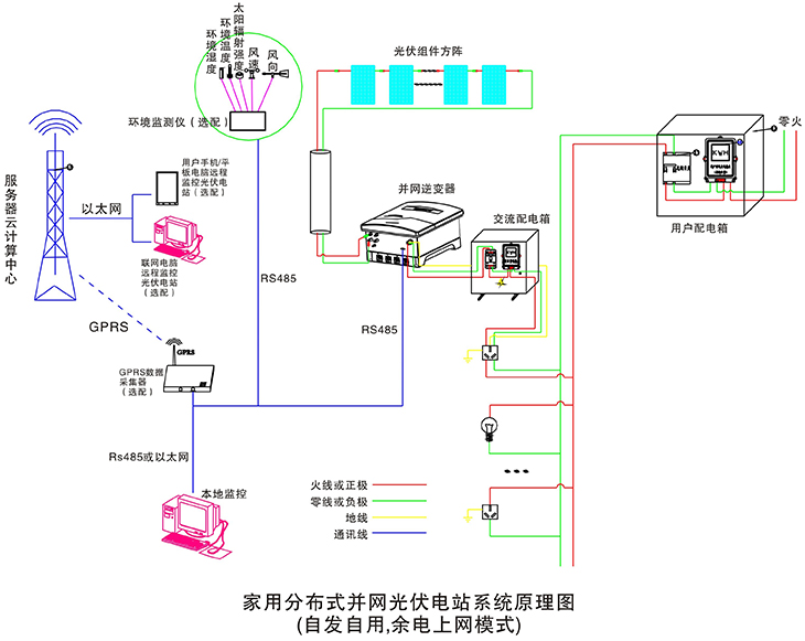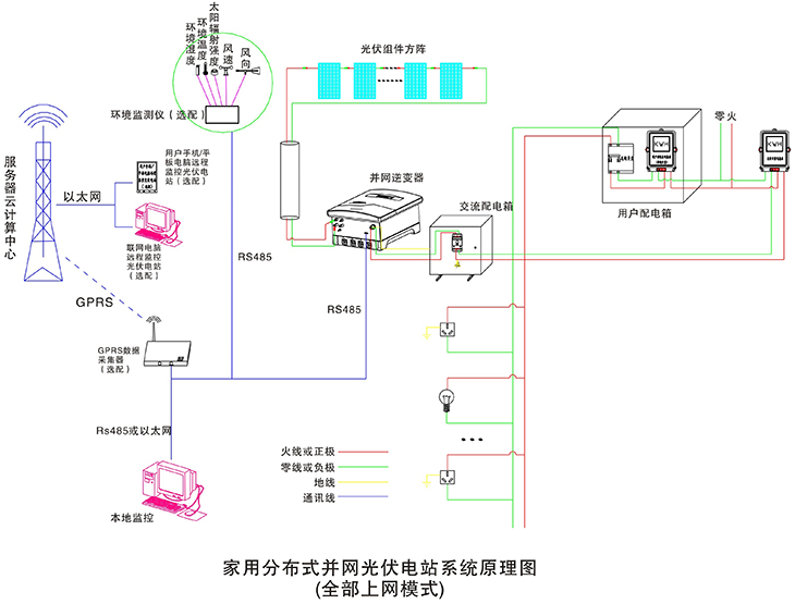在晴朗的白天,裝在屋頂上的光伏組件發(fā)出的直流電經過并網逆變器逆變成與電網同頻率同相位的單相交流電給負載進行供電,在夜晚或陰雨天等太陽光照不足的情況下,系統(tǒng)處于待機狀態(tài),負載用電全部來自電網。您可以通過系統(tǒng)監(jiān)控軟件來實時查看系統(tǒng)的運行狀態(tài)和故障信息,或者是選配遠程通訊數(shù)據(jù)采集器,將系統(tǒng)工作數(shù)據(jù)通過GPRS或以太網,傳輸?shù)侥氖謾C、平板電腦或任意一臺聯(lián)網的電腦,以便于您遠程實時掌控電站的信息。