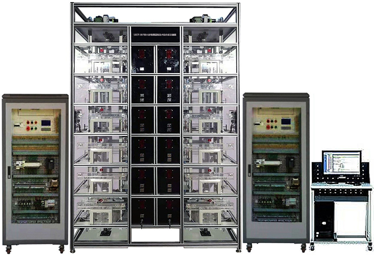 電梯控制技術(shù)綜合實(shí)訓(xùn)裝置是專(zhuān)門(mén)為職業(yè)院校開(kāi)設(shè)的電氣自動(dòng)化、機(jī)電一體化、機(jī)械制造與自動(dòng)化等相關(guān)專(zhuān)業(yè)而研制的,裝置根據(jù)智能建筑中升降電梯的機(jī)構(gòu)按照一定的比例縮小設(shè)計(jì),所用設(shè)備、器件與實(shí)際電梯基本一致,采用槽鋼方管框架結(jié)構(gòu)整體設(shè)計(jì),正面使用透明有機(jī)玻璃面板,融低壓電氣、PLC、變頻調(diào)速、智能人機(jī)、傳感檢測(cè)、視頻監(jiān)控、智能考核系統(tǒng)等于一體,實(shí)現(xiàn)智能電梯復(fù)雜的開(kāi)關(guān)量控制、時(shí)序邏輯控制。通過(guò)該裝置的操作訓(xùn)練可考核學(xué)生掌握智能電梯的裝調(diào)與維護(hù)綜合能力,如電梯呼梯盒的安裝、井道信息系統(tǒng)的安裝、平層開(kāi)關(guān)檢測(cè)位置調(diào)整、門(mén)機(jī)機(jī)構(gòu)調(diào)整、電氣控制柜的器件安裝、接線(xiàn)、變頻器參數(shù)設(shè)置、PLC編程與調(diào)試、電梯群控功能調(diào)試、電梯故障排除、運(yùn)行維護(hù)等,除了滿(mǎn)足專(zhuān)業(yè)實(shí)訓(xùn)教學(xué),還能開(kāi)展技能考核以及職業(yè)技能競(jìng)賽。