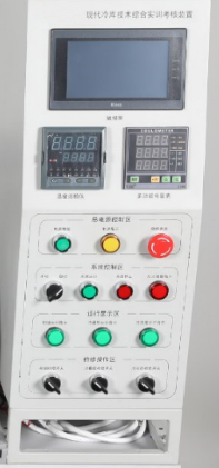 3、開放性。該設(shè)備設(shè)置了一個系統(tǒng)操作臺,在庫體一側(cè)安裝有可更換側(cè)板,以便于學(xué)員在上述的操作臺與側(cè)板上安裝制冷系統(tǒng)和電路系統(tǒng)等。