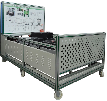 (比亞迪e5 EV300純電動(dòng)汽車(chē)) 鋰動(dòng)力電池組、電池管理系統(tǒng)BMS、BMS顯示屏(7寸觸摸屏)、維修開(kāi)關(guān)、輔助蓄電池(12V45AH)、高壓配電箱、漏電傳感器、車(chē)載充電機(jī)、國(guó)標(biāo)充電插座與充電槍、直流接觸器(包含充電繼電器、總正繼電器、總負(fù)繼電器、預(yù)充繼電器)、急停開(kāi)關(guān)與電源總開(kāi)關(guān)、一體化全鋁合金型材搭建的移動(dòng)臺(tái)架(1500×700×1700mm ,帶自鎖腳輪裝置,帶安裝檢測(cè)端子的原理面板1448×940mm)、故障考核系統(tǒng)、設(shè)備操作說(shuō)明書(shū)。