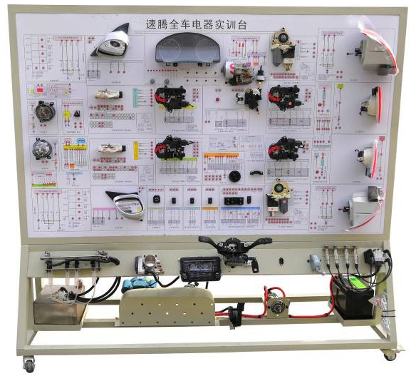 該設備采用 全新 大眾速騰1.6L 整車電器實物為基礎,充分展示汽車發(fā)動機防盜系統(tǒng)、儀表系統(tǒng)、燈光系統(tǒng)、雨刮系統(tǒng)、喇叭系統(tǒng)、點火系統(tǒng)、電動車窗系統(tǒng)、電動門鎖、音響系統(tǒng)、起動系統(tǒng)和充電系統(tǒng)等汽車電器各系統(tǒng)的組成結構和工作過程。