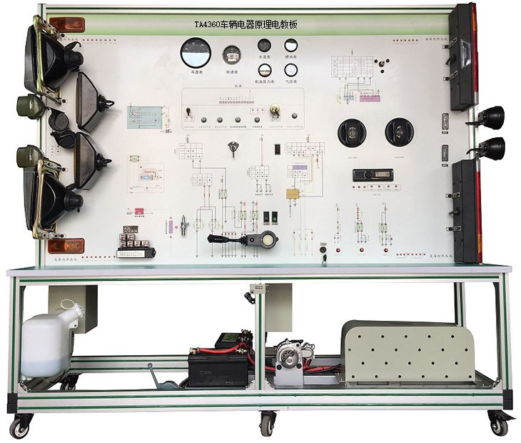 該設(shè)備采用泰安TA4360柴油機(jī)整車電器實(shí)物為基礎(chǔ),充分展示汽車儀表系統(tǒng)、燈光系統(tǒng)、雨刮系統(tǒng)、喇叭系統(tǒng)、發(fā)動(dòng)機(jī)電器系統(tǒng)、起動(dòng)系統(tǒng)和充電系統(tǒng)等汽車電器各系統(tǒng)的組成結(jié)構(gòu)和工作過(guò)程。