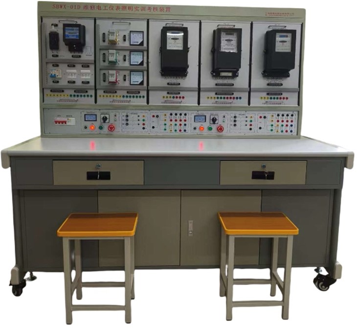 電工技能實訓(xùn)考核裝置是根據(jù)電工實訓(xùn)考核的實際情況而設(shè)計的集技能培訓(xùn)、培訓(xùn)考核鑒定于一體的多功能設(shè)備,以標(biāo)準(zhǔn)的配電柜為主柜,合理利用柜體的雙面空間.科學(xué)地布置各種低壓電氣設(shè)備。