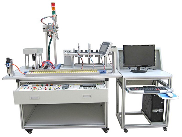 光機電一體化實訓(xùn)考核裝置、光機電一體化實訓(xùn)考核設(shè)備是一種最為典型的機電一體化產(chǎn)品,是為職業(yè)院校、職業(yè)教育培訓(xùn)機構(gòu)而研制的,適合機電一體化、電氣自動化等相關(guān)專業(yè)的教學(xué)和培訓(xùn)。光機電一體化實訓(xùn)考核裝置它在接近工業(yè)生產(chǎn)制造現(xiàn)場基礎(chǔ)上又針對教學(xué)及實訓(xùn)目的進(jìn)行了專門設(shè)計,強化了機電一體化的安裝與調(diào)試能力。光機電一體化實訓(xùn)考核裝置由導(dǎo)軌式型材實訓(xùn)臺、機電一體化設(shè)備部件、電源模塊、按鈕模塊、PLC模塊、變頻器模塊、交流電機模塊、步進(jìn)電機及驅(qū)動器模塊、模擬生產(chǎn)設(shè)備實訓(xùn)單元(包含上料機構(gòu)、搬運機械手、皮帶輸送線、物件分揀等)和各種傳感器等組成。采用開放式和拆裝式結(jié)構(gòu)設(shè)計,可根據(jù)現(xiàn)有的機械部件組裝生產(chǎn)設(shè)備,使整個裝置能夠靈活的按實訓(xùn)教學(xué)需要組裝機電一體化設(shè)備。裝置采用工業(yè)標(biāo)準(zhǔn)結(jié)構(gòu)設(shè)計及抽屜式模塊放置架,組合方便?刂茖ο缶捎玫湫蜋C電設(shè)備部件,接近工業(yè)現(xiàn)場環(huán)境,滿足實訓(xùn)教學(xué)或技能競賽需求。