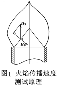 正常法向火焰?zhèn)鞑ニ俣榷x為在垂直于層流火焰前沿面方向上火焰前沿面相對于未燃混合氣的運動速度。在穩(wěn)定的Bensun火焰中,內(nèi)錐面是層流預(yù)混火焰前沿面。在此面上某一點處,混合氣流的法向分速度與未燃混合氣流的運動速度即法向火焰?zhèn)鞑ニ俣认嗥胶,這樣才能保持燃燒前沿面在法線方向上的燃燒速度(圖1),即